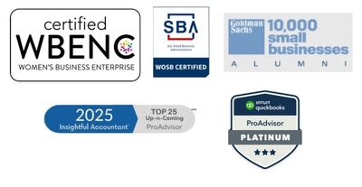 We are also a proud alumni of the Goldman Sachs 10,000 Small Businesses program and are a Quickbooks Intuit ProAdivisor Platinum status firm.